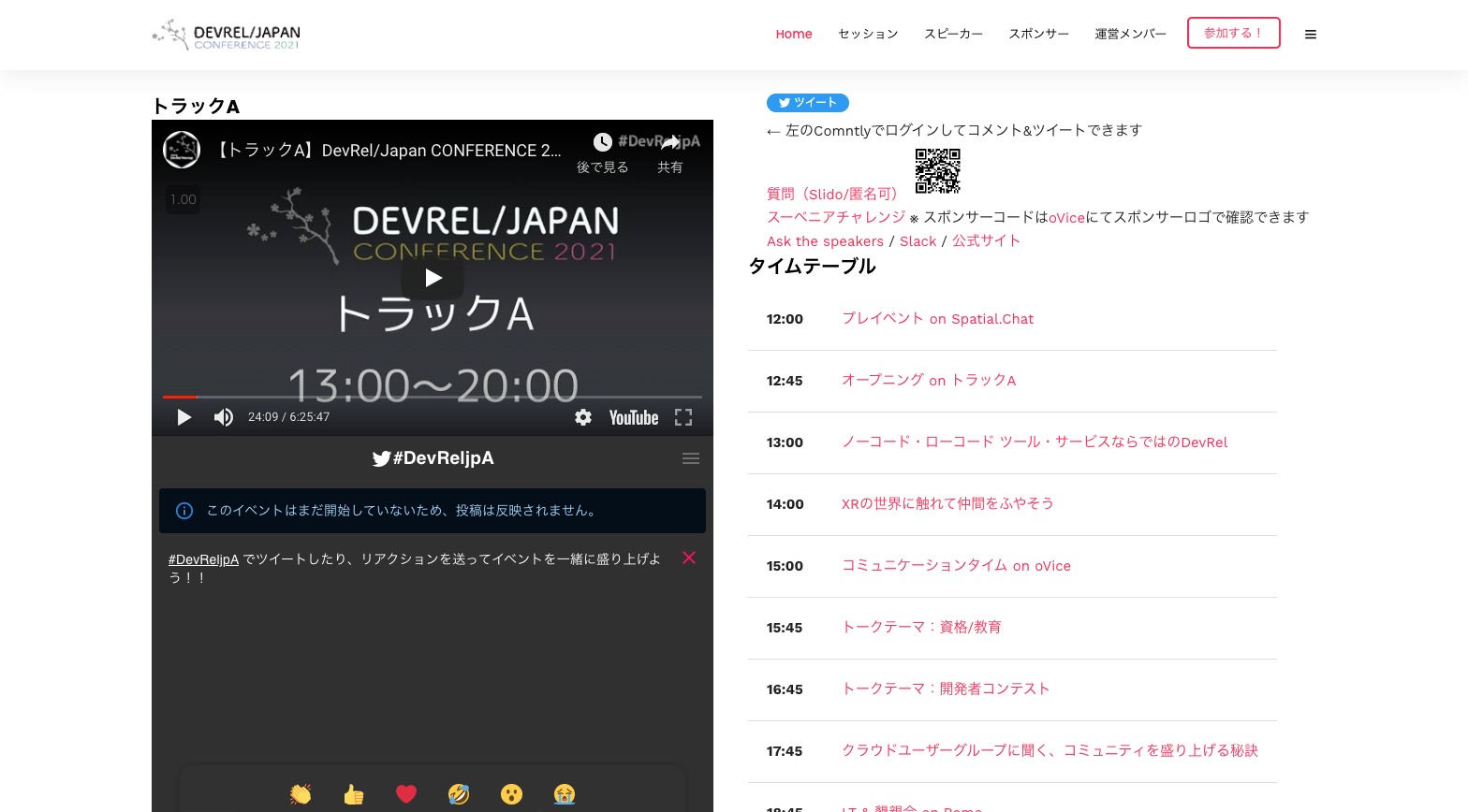 当日はビューイングページを用意しましたが、動画やコメントの表示に使ったのがComntlyです。1つのページ内に全トラック埋め込んだので、各トラックを渡り歩くのが簡単になったと思います。