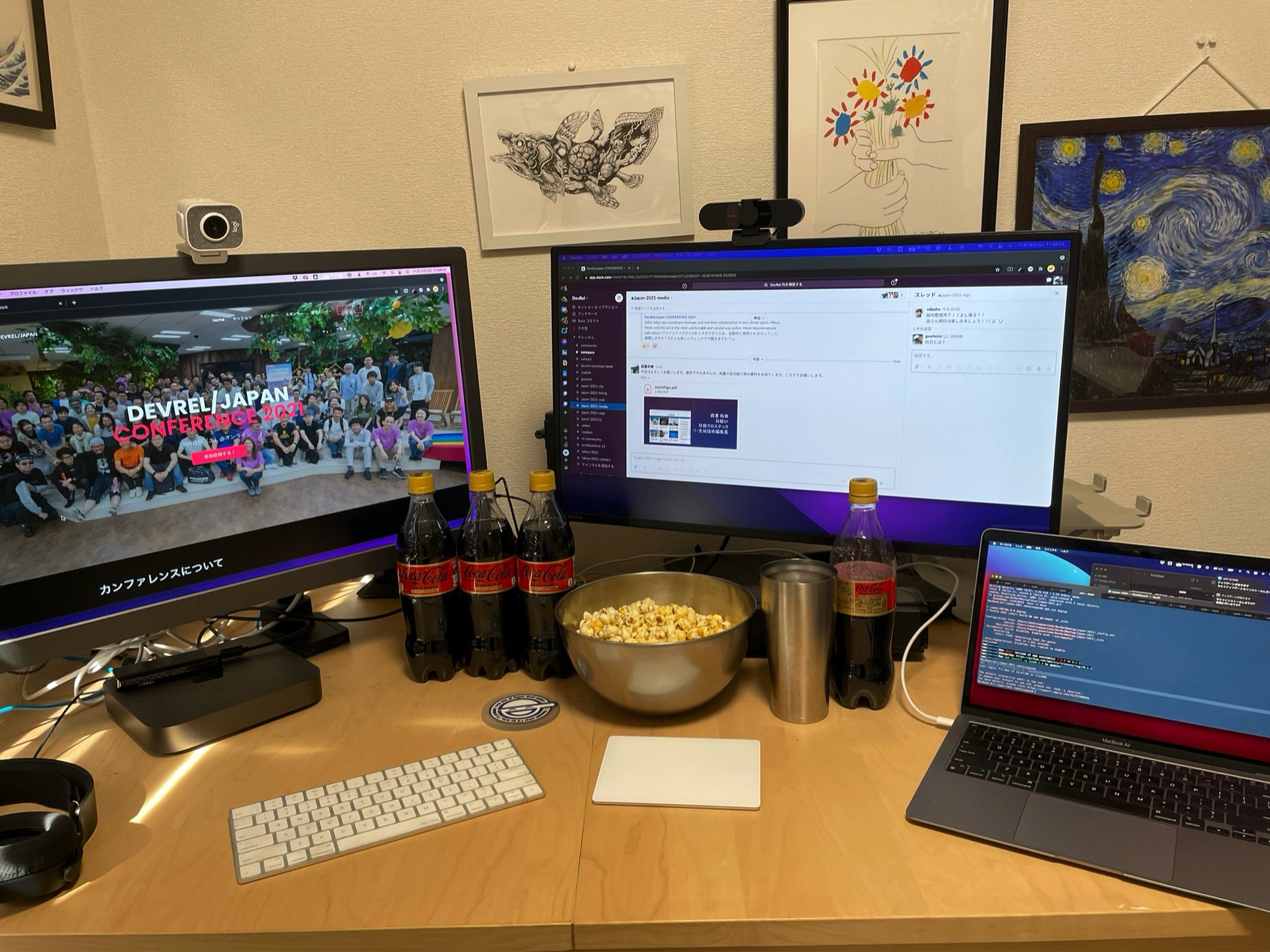 オンラインカンファレンスとあって、なかなか映える写真は多くありませんが、後述する視聴スタイルの写真などをアップしてもらいました。